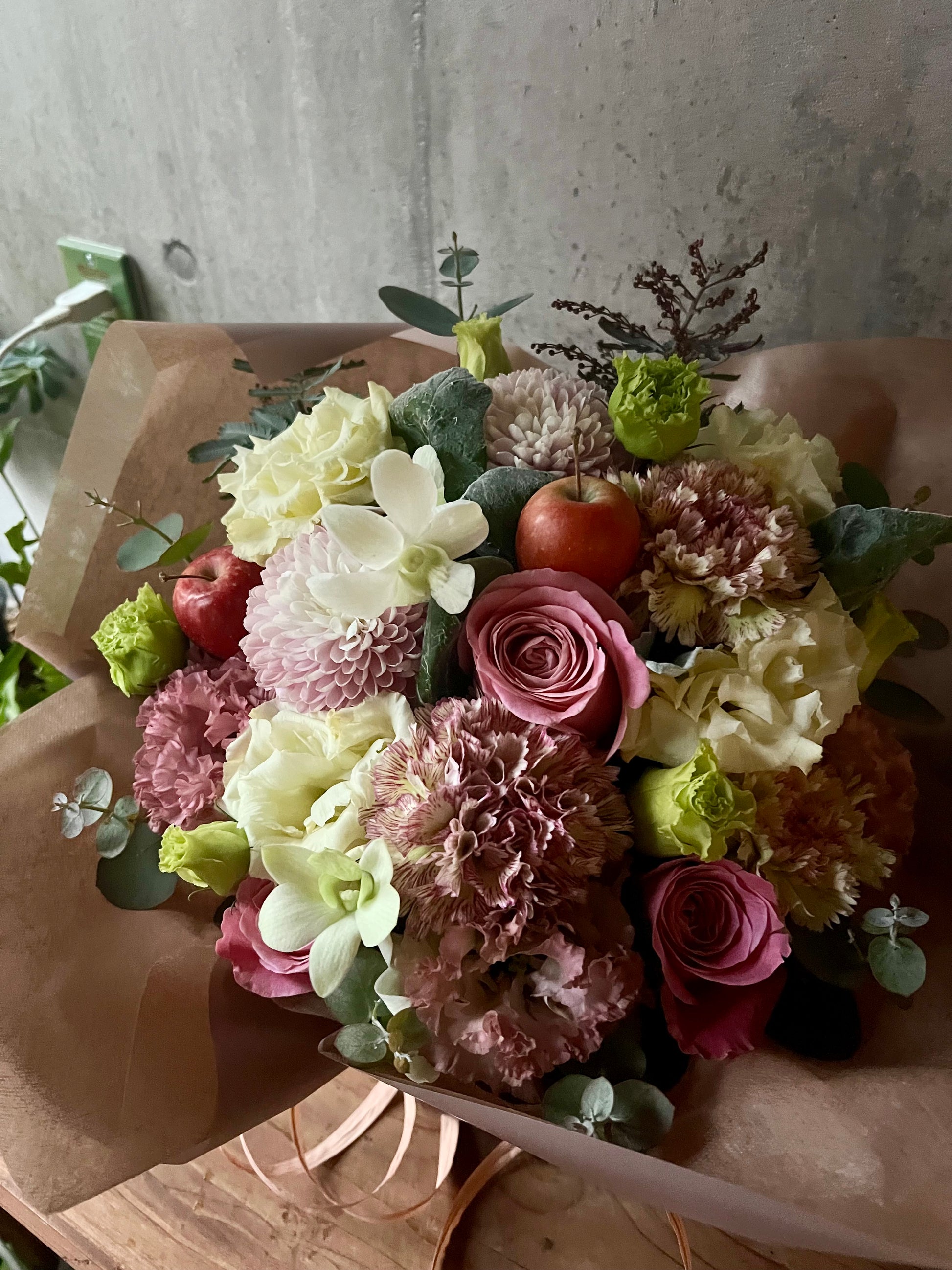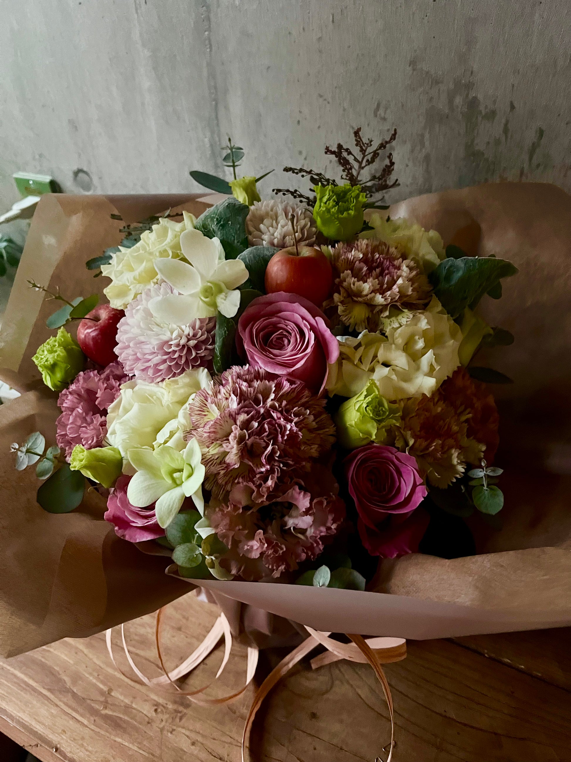 - 使用する花は、季節や仕入れの状況により写真と異なる場合がございますが、ボリューム感や雰囲気は掲載写真にそうよう十分配慮いたします