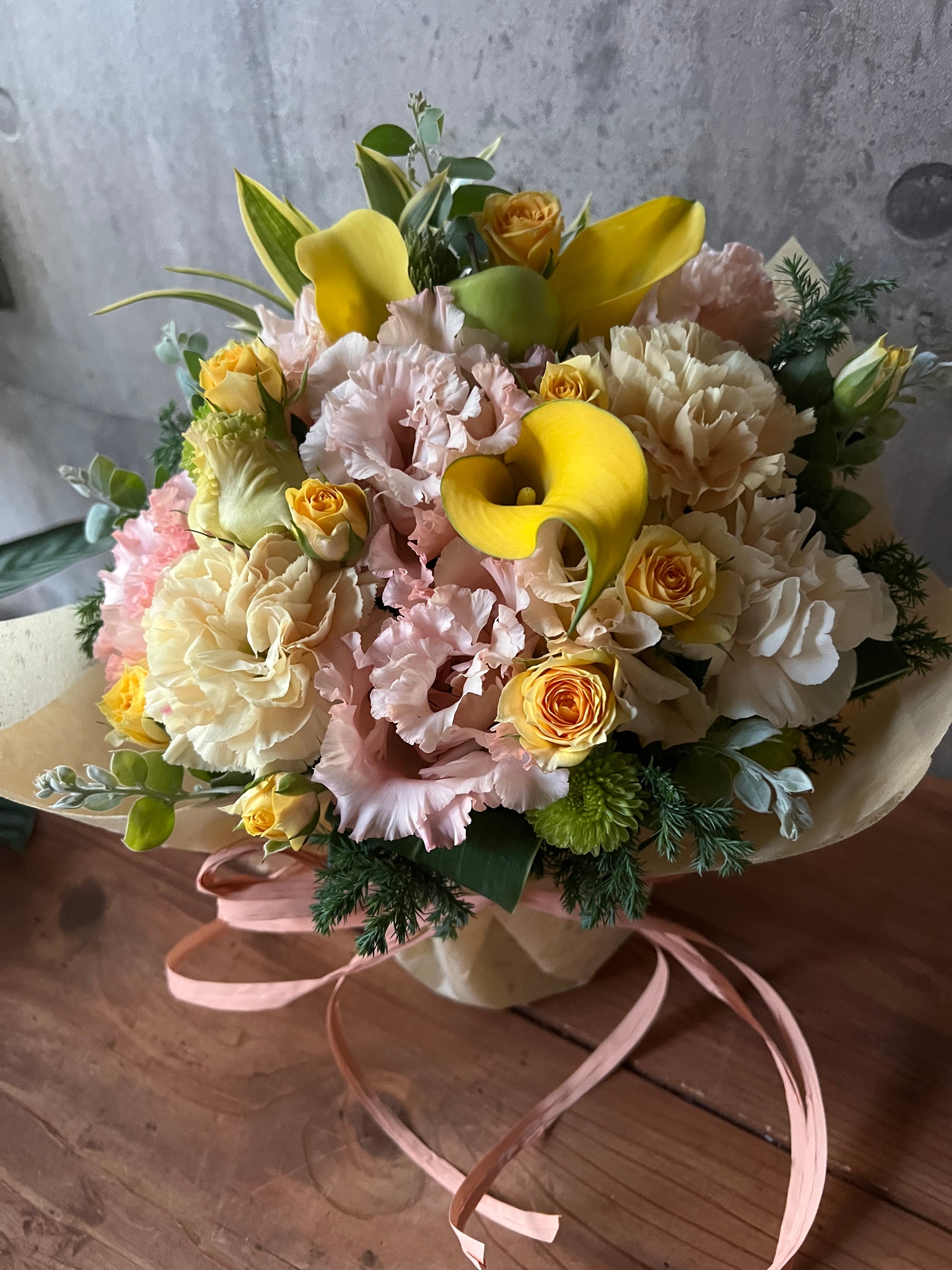 - 使用する花は、季節や仕入れの状況により写真と異なる場合がございますが、ボリューム感や雰囲気は掲載写真にそうよう十分配慮いたします。